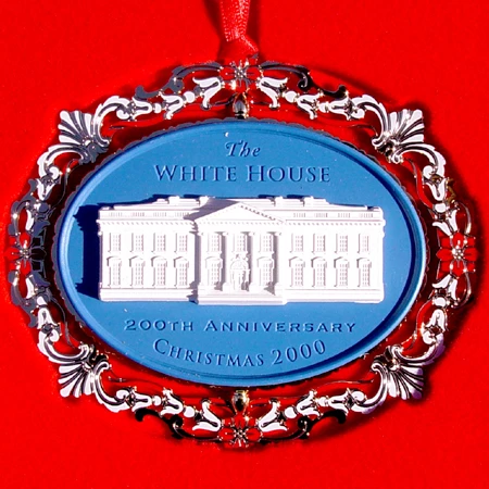 Within a 24kt-gold-plated frame, the 200th Anniversary Ornament depicts the north face of the White House on the front and the south face of the White House when flipped over, representing the old, the new, and the turn of the century. This Christmas Gift Idea reaffirms America?s pioneer spirit.