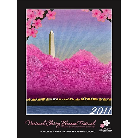 The Official 2011 Poster was created Virginia Illustrator Michael Glenwood Gibbs who famously known for his conceptual art for magazines, corporate publications, books, posters, and newspapers. The poster features cherry blossoms with the Washington Monument in the background.