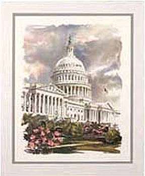 Beautiful reproduction of watercolor print by Paul Norton depicting the East Front of the Capitol.