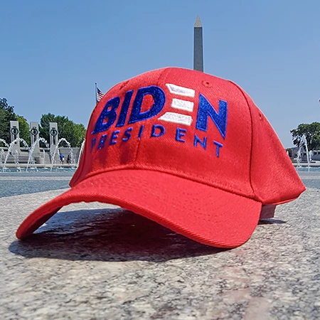 Are you with Joe? Wear his cap. Embroidery features blue and red stitching.